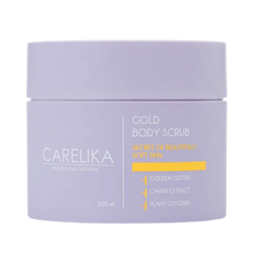 Добавьте роскошное сияние в ежедневный уход за кожей! Золотой скраб для тела CARELIKA — это первоклассное отшелушивающее средство, которое мягко удаляет омертвевшие клетки, загрязнения и токсины, возвращая коже гладкость, мягкость и невероятный блеск. Обогащенный золотыми блестками, экстрактом икры и растительным глицерином, скраб преображает тусклую кожу, делая ее сияющей, увлажненной и шелковистой. Экстракт виноградного глицерина обеспечивает мощную антиоксидантную защиту от солнечных повреждений. Подарите своей коже сияние, достойное золота!