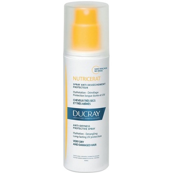 Дюкрэ Нутрицерат спрей защитный для сухих волос, для очень сухих и поврежденных волос обладает уникальным составом, который обеспечивает длительную защиту волос от негативного воздействия среды и UV-излучения. Спрей качественно увлажняет волосы и насыщает их питательными компонентами, позволяя защитить волосы от обезвоживания. Масло иллипа, разглаживающие компоненты растительного происхождения и релипидирующий комплекс обеспечивают мягкость, отлично восстанавливают волосы, облегчают расчесывание, придают блеск и эластичность укладке.